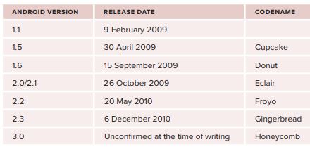 Android has gone through quite a number of updates since its first release. Below table shows the various versions of Android and their codenames.