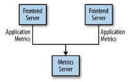 This is a simple solution to a simple problem that works when you are getting started with monitoring. Before long, you decide you would like to analyze your metrics over a longer term, and that doesn’t work well in the dashboard. You start a new service that can receive metrics, store them, and analyze them.