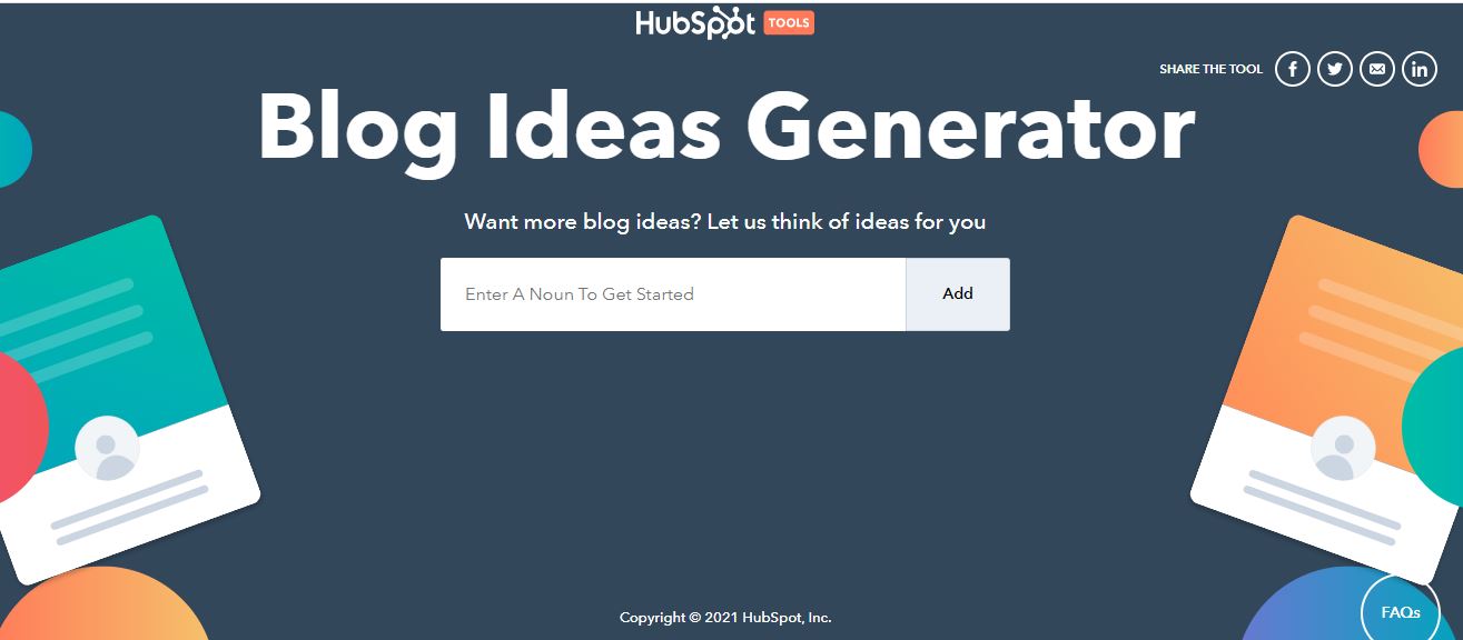 Curating topics can become difficult sometimes. Hubspot’s blog topic generator can help you in that area. All you have to do is type in any three keywords related to the topics that you find interesting and then Hubspot will come up with topic ideas for you to write about.