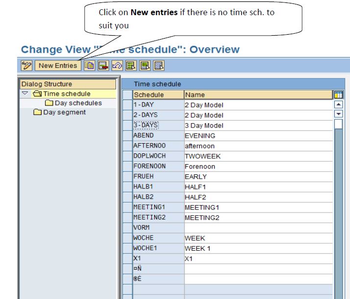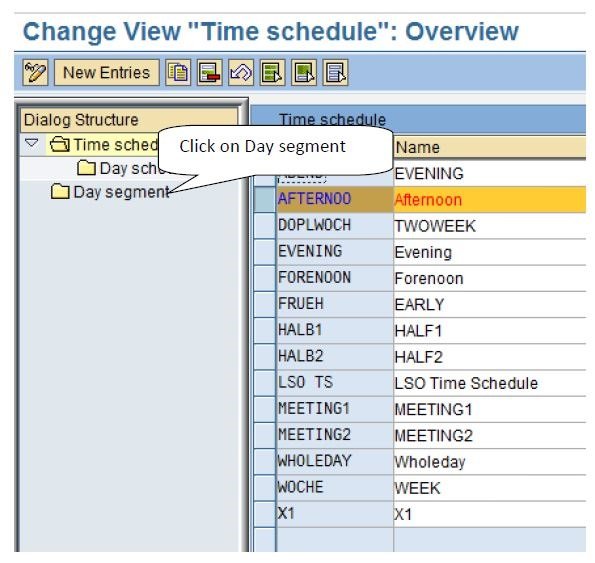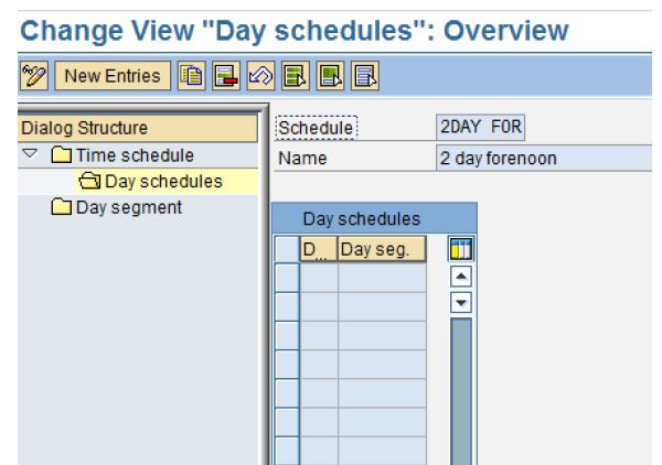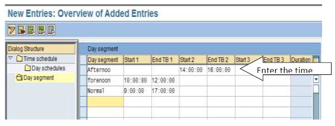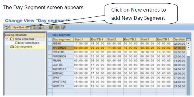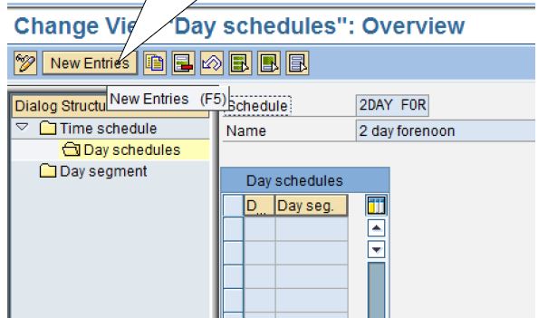 If there is no day segment to suit you, choose New Entries and enter a key for the new day segment. Assign a