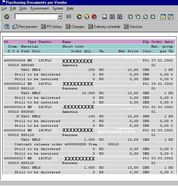Step 3: On the “Purchasing Documents per Vendor” Screen: