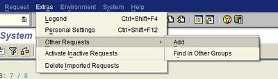 2), To Copy the transport request and click on extras in menu bar —>Other requests —> add
